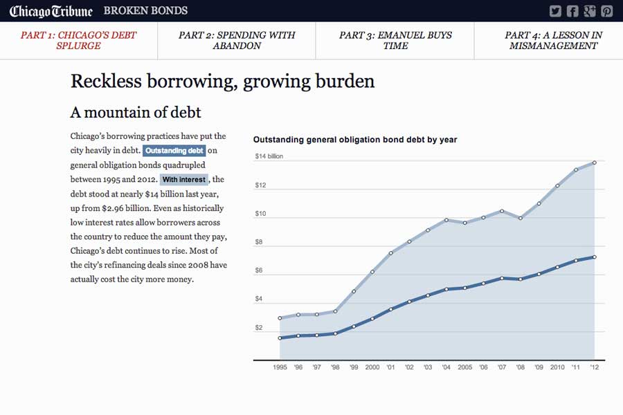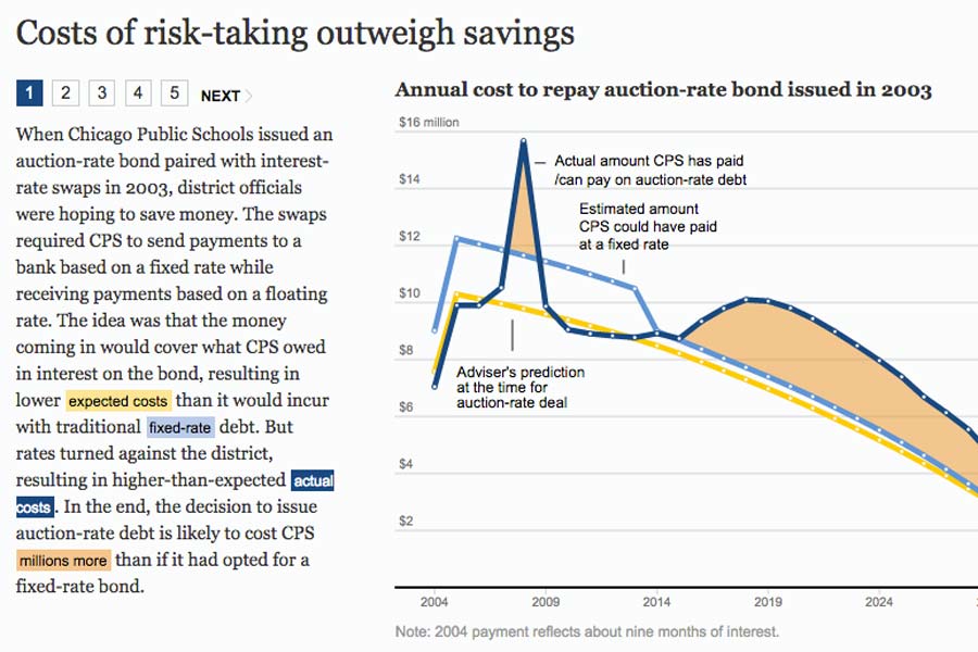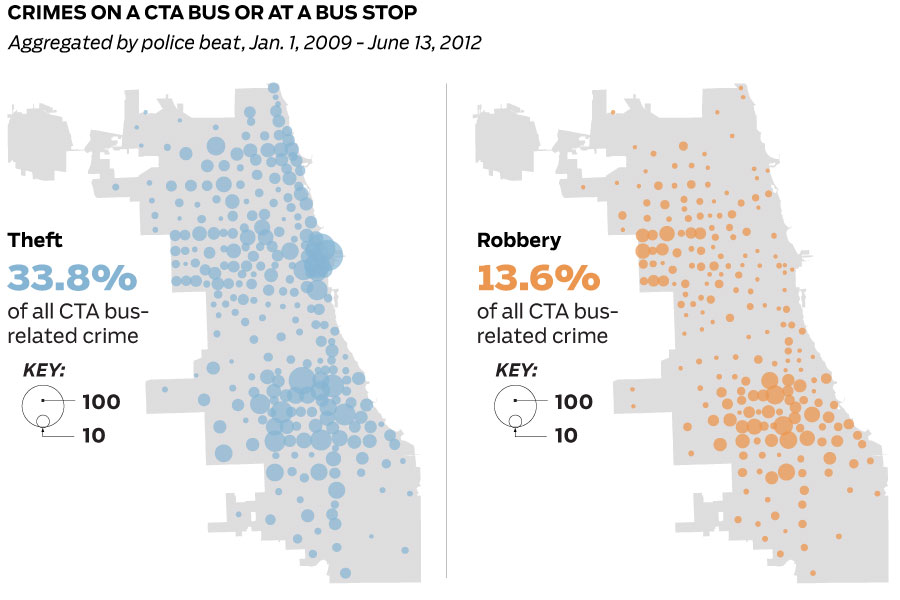Follow @alexbordensAnalyzing 11 years of Chicago Police Department crime data revealed a growing trend of thefts and robberies on CTA buses and trains fueled by a sharp increase in the theft of electronic devices, such as iPhones. The analysis using per capita rates, GIS and data visualization showed the risk to CTA riders, crime patterns and causes. The two part series informed readers of risks, time of day and geographic trends while telling the story of numerous crime victims on the CTA.