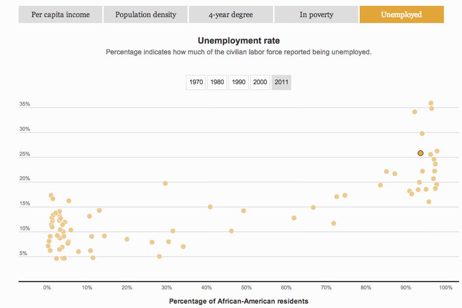 Chicago is known as a diverse yet racially clustered city. When Divvy released the locations of Chicago's new bike share system it was easy to eyeball a map and infer that the system favored white neighborhoods. However, a deeper analysis using GIS and U.S. census data found that the network was concentrated in the city's most densely populated areas, which are also home to mainly white residents. The analysis led to a story examining the program's launch strategy and a web graphic examining bike share systems in Chicago and other major U.S. cities.
